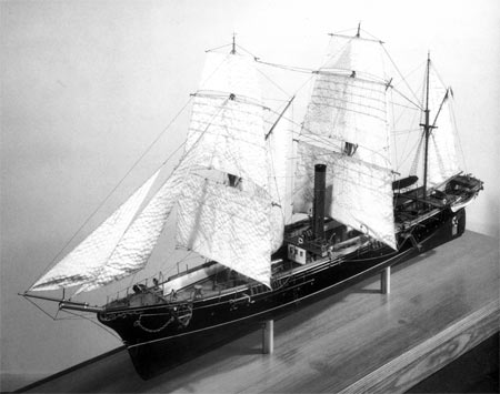日本建造的第一艘近代军舰“清辉”号模型,该舰吨位、航速均不及“万年青”,而且完工时间也晚数年。