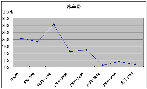 被访者在对汽车进行维修、保养时,最倾向于选择在购车的汽修销售店或指定的维修保养处,占总体的58.3%,比2008年上半年的数据高5.6%,其余几个依次为就近选择汽车维修保养店17.2%、保险公司指定的维修保养处13.3%等。 养车费