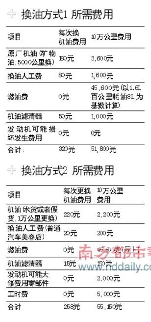 南方都市报6月25日报道 采用不同的换机油方式,所产生的费用会有明显的差异。