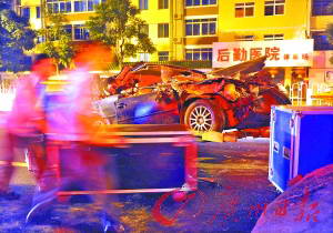 事发小北路肇事轿车前排乘客当场死亡后排男子拒接受酒精测试 “太惨了,有个人的头一下子就被削掉,飞了出去。”前晚11时许小北路不少居民目睹了迄今发生在这里最为惨烈的一起车祸。 记者看到,事故发生在南往北方向的靠路边车道上,一辆“吉利搬运”的货车正停在路边,货车车头、车厢都没有太大损坏,但仔细一看,才发现,用来连接车厢与地面便于搬运货物的厚实钢板已经卷起了一个大角,在钢板上,有些白色液体,围观市民告诉记者这是死者流出来的脑浆。 记者看到货车装的是一些影像器材,大部分已经装好,只剩最后一点了,器材箱也滚落在周围,它旁边是一辆三厢小轿车,车子面目全非,尤其是副驾驶座位置及其后的地方,连车顶都已经被掀开,驾驶室内血肉模糊,后座也严重变形,小轿车只有一侧车灯不停闪烁。死者尸体停放在一辆平板车后面,头部不见了。 一名穿橙色衬衣的微胖男子正在接受警察询问,记者离2米远也能闻到一股酒味,而警察在对其进行酒精测试时,该男子并不十分配合,不愿将嘴含着测试仪器,只对着仪器轻呼了两下,多次测试不成的情况下,警方将其带走。 据现场目击者告诉记者,搬运车在晚上10时多就停在这里装货,而事发时,轿车正以上百公里的时速冲过来,没来得及刹住车,一下子冲向正在装货的搬运车,“我只听到"轰"的一声,赶紧跑过去看才发现出大事了。”这名目击者告诉记者,小轿车副驾驶座一侧正好被搬运车车厢后面伸出来的钢板切过,副驾驶座上男子大半个人头瞬间被削掉,飞到了后排座位中间,“太惨了,估计当时死者连叫一声都来不及。”据附近居民告诉记者,事发时小轿车还撞伤了好几名正在装货的搬运工。 据目击者告诉记者,小轿车内驾驶员和后排所坐的人没有事,驾驶员是一名30多岁男子,事发后,浑身是血,摇摇晃晃从驾驶室内爬出来,还看了两下,也没有说什么,就沿着小北路走了,而现场接受询问的是他的一名同伴。 警方正在对事故原因进行调查。 |