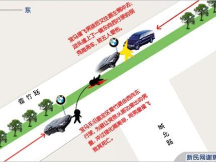 肇事宝马车冲过隔离带,迎面撞上别克商务车。新民网 胡彦珣摄