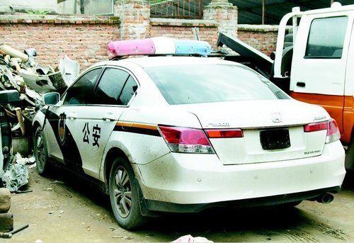 随后,记者在山阳县天宏汽修厂见到该肇事车辆,该车是一辆崭新的广东本田雅阁制式警车,车身上喷着“公安”字样,车顶安装着警灯,该车没有悬挂车牌,该警车前部已经被撞得面目全非,车的前引擎盖已严重变形,前挡风玻璃也已破碎,安全气囊全部打开。