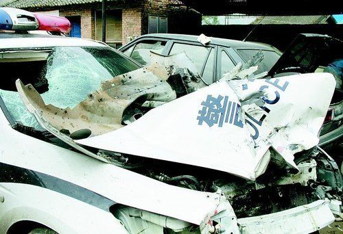 肇事警车已经被撞的面目全非