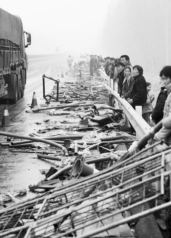 爆炸发生后,连霍高速交通一度中断,昨日8时40分才恢复通车。昨晚,4名重伤者中有一人死亡,另外一人未脱离生命危险。 爆炸货车被炸成“碎片” 昨天早上,记者接报料后赶赴现场。上午9时许,过了兰考接近现场时看到,排队等候的自西向东行驶的车辆已经排了两三公里长。到达位于连霍高速457km处北半幅的爆炸现场后看到,连霍高速北侧路面被炸出一个20多平方米的大坑,深近1米,路面被炸开多条裂缝。 高速公路路中的数十米隔离带和绿化带完全被炸平,两侧各有百余米的护栏被“吹飞”不知去向。有百余米长的钢护栏和隔离网像扭麻花一样被炸抛到路基下。 道路两侧百米内,有上百棵杨树林被爆炸冲击波冲断,都没了上半截。一些离现场近的杨树有被火烧过的痕迹。一公里开外,很多小树像被大风“吹过”,树枝呈散射状,僵硬地倾斜着。“发生爆炸的福田货车已被炸成了碎片,一些零部件飞到树林里,其他部分找不到了。货车上的人已被炸得血肉横飞,根本找不到。”商丘高速交警大队事故科民警王某说。 记者在现场看到,方圆500米内可以看到爆炸后的货车铁皮碎片,路旁杨树林和路沟里还不时可看到散落的黑乎乎的人体器官,煞是恐怖。“太惨了!”赶来看热闹的附近村民说。 炸飞同向行驶大货车 在距离爆炸现场20米远的高速路另一侧(南侧),停着一辆蓝色解放牌大货车,只剩下一个框架。货车上的四五十吨路灯杆全部被炸飞,最远的飞到了500米开外的树林里。 “这一捆路灯杆至少有500斤,被炸出一里多地,足见爆炸的威力!”附近邓寨村村民邓小利说。 商丘高速交警大队四中队副中队长张某说:目前初步判断,爆炸是由福田货车装载的炸药引起的,炸药具体成分还需要进一步确认。根据录像分析,解放牌大货车与其同向行驶,是被其炸到路对面的。 2公里外村民以为发生地震 昨天上午10时,商丘高速交警大队事故科的民警正在现场维持秩序,公路段的工人正在紧张有序地进行现场清理,经过的车辆速度缓慢。民警张宝顺说:“高速上还没见过这么大的爆炸事故。” 爆炸发生时,附近商丘民权县双塔镇的四五个村庄均有强烈震感。2公里外的牛牧岗村的村民闫先生说,早晨5点钟,他起床到距离事发地点东南方向八九公里的村子,准备给朋友帮忙举办婚礼,“当时先是看到这边一片火光,还冒烟,接着就听见"轰隆"一声,像是爆炸,声音持续几秒钟,接着感觉大地猛震了一下。” 闫先生说:“牛牧岗村小学的玻璃都被炸碎了,村小学已经停课。” “当时5点多,都在睡觉呢,突然一声响,窗户上的玻璃都碎了,还以为地震,家里人都赶快往外跑。住在民权县城的亲戚还打电话问我咋回事,他们也听到爆炸声。”附近新庄村村民李女士告诉记者,离事发地最近的新庄村和邓寨村,几乎每家玻璃都被震碎。李女士9岁的儿子床在窗户边,睡梦中脚还被玻璃碎片割伤了。 记者来到新庄村,看到一户村民新盖房子的二楼屋门被震掉,并被冲到了屋子另一侧的墙上。 李女士说:“幸亏是早晨,要是大白天发生爆炸,高速附近车多人多,危害会更大!” |