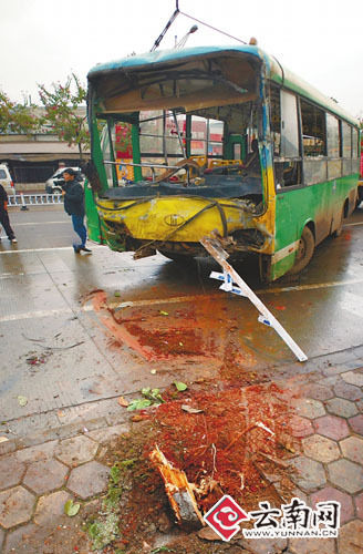 受伤乘客得到救治 12月10早晨6点40分,一辆由玉溪市红塔区高仓镇开往市区的公交车,在驶过玉溪市红塔区冯井加油站前的十字路口时,一头将对面车道边的行道树及一家市场的围墙撞倒。公交车受损严重,车上22人不同程度受伤,所幸无人死亡。 上午9点,记者赶到现场时,伤者已经被送往玉溪市医院接受治疗。现场交警实行了单向交通管制,吊车已经把冲入市场的公交车吊了出来,现场一片狼藉,散落的西红柿,白菜随处可见。公交车上各种农产品散落各处,前挡风玻璃整体脱落,驾驶室因挤压严重变形,车内还有斑斑血迹。现场交警告诉记者,目前事故原因正在调查中。 事故吓坏了从研和镇来城里卖菜的王绍定,回想起当时的情形,他后怕地说,当时司机开公交车撞上了隔离栏后,公交车又像控制不住一样撞到大树、围墙上才停下来。据他感觉车速十分快。 记者随后在玉溪市医院找到了部分伤者,公交司机蒋先生腿部骨折,意识清醒,但他不愿接受采访。一名女乘客锁骨骨折,头部受伤,正在接受治疗。 据一位轻伤者说,当时公交车上基本都是卖菜的菜农,早上6点多,天还没有亮,公交车开到冯井加油站十字路口转弯时,只听见一声巨响,像是压到什么东西之后,车子就朝路边冲了过去,然后车上就像炸了锅一样,喊的喊,叫的叫。惊魂未定的他们下车后才发现车已经冲出了这么远,“太害怕了!” 玉溪市医院急诊科针对这起事故的伤者,特别开设了临时诊疗点。 据玉溪交警部门称,交通事故发生10分钟后,值班民警杨超、李昶到达现场处理情况,经查此次事故系一辆12路公交车撞坏道路中心交通隔离栏后,又撞到行道树和报废车市场围墙,造成乘客受伤。 |