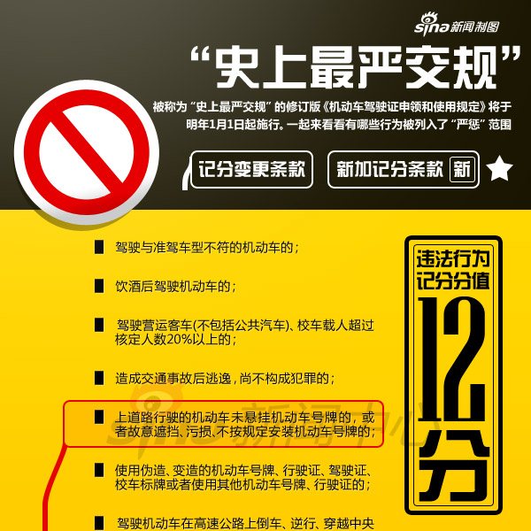 ![]() ![]() ![]() 被称为“史上最严交规”的修订版《机动车驾驶证申领和使用规定》将于明年1月1日起施行。一起来看看有哪些行为被列入了“严惩”范围。 |
