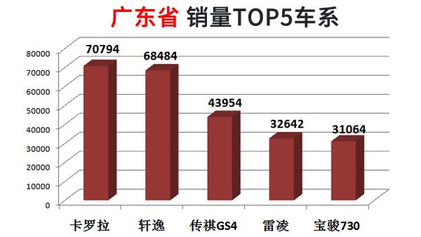 广东是日系的大本营,所以日系车居多不难理解,卡罗拉的销量占到全国的接近三分之一。传祺GS4也是广汽的热销SUV。广东的民营经济发达,能拉快跑的宝骏730很适合用来载人拉货使用。广东省没有一款大众车型进入TOP5,大众的南方战略看起来效果不甚明显。