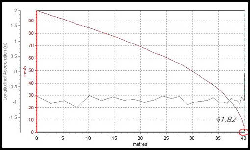 不管是厂家所做的测试还是众媒体在新车试驾时的评测都会提到一个数据--制动距离,大致方法是将车辆加速到100km/h,待车辆匀速行驶时,将刹车踏板踩到底,通过测试设备来计算出车辆从100km/h到静止状态所行驶的距离,轿车的制动距离一般在40m左右。