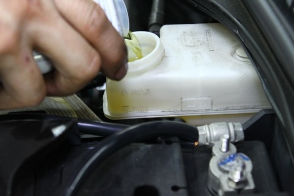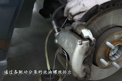 当出现这种情况时,我们需要到修理厂进行制动系统排气,排气一般有两种方法,一个是用更换刹车油的机器与刹车油杯相连,在向里顶油的同时,分别打开四个制动分泵的放油螺丝,通过刹车油的新旧交替,将内部气体排出。还有一种方法,通过两个维修人员的配合,一人不断的大力踩踏刹车踏板,根据踩踏情况,适时打开制动分泵的放油螺丝,也可达到排气的作用。